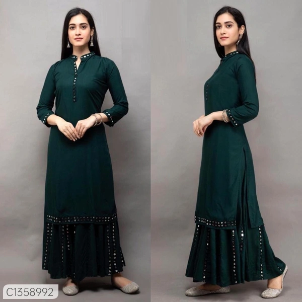 Desi Closet Delicate Mirror Foil Work Rayon Cotton Sharara Set