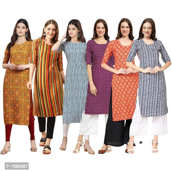 Elegant Crepe Digital Printed Straight Kurta For Women- Pack Of 6