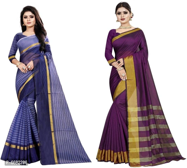 Fashion Cotton Silk Saree For Womens(Pack of 2, Multicolor)