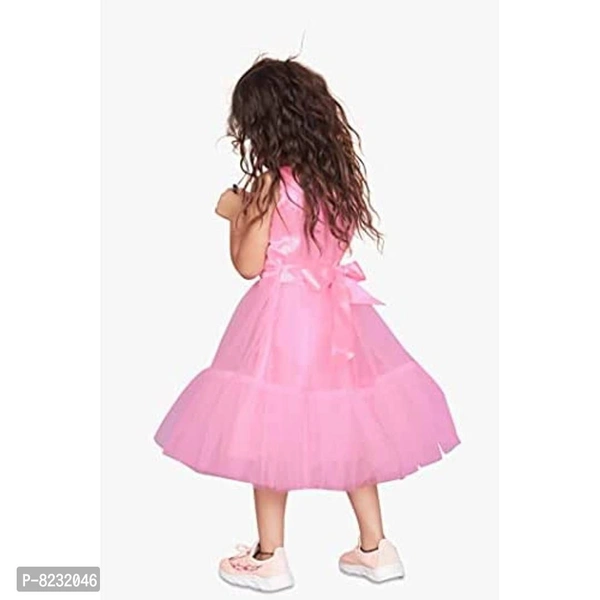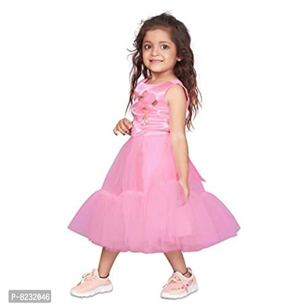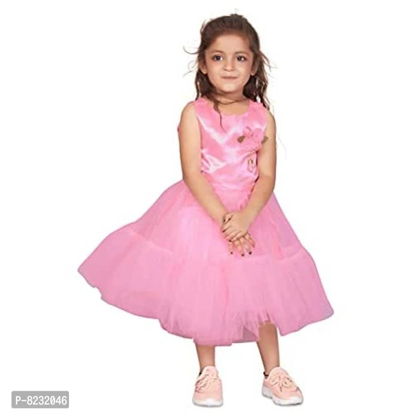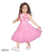 "Enlighten your little one's wardrobe with something stylish party frock this season from Fashion Dream on Amazon. Pair it with sandals and a bow to get her ready for a Birthday, Christmas, Photo shoots or parties and other festive occasions. Made from nylon net and specially designed in layered Nylon net fabric ruffle at bottom flare skirt. This well-crafted pattern dress will feel soft against your little baby girl's sensitive skin. It features a round neck, sleeveless and this dress has a net ruffle frill at the hemline with a pink and flower in the front. In this dress your princesses will be gleaming."