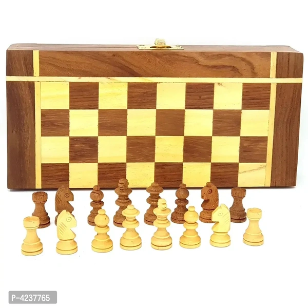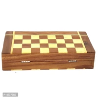 Savor the royal game with a difference with our wooden chessboard. Lay the table for a war of the bright minds and enjoy each move as you play. Skillfully handcrafted, this chessboard is made of wood. It is a folding box type board with two partitions to keep the black and white pieces. The pieces are also made of wood in light and dark shades of brown. Then it can be unfolded and spread over. It is indeed a delightful item for entertainment and decoration of your surroundings. External dimension of chess board is around 8 inch x 8 inch when open and 8 inch x 4 inch when folded. Board is also decorated with wood inlays. Wooden chess board can be folded and it also works as storage to keep the pieces when folded. Brown colored wood is sheesham (indian rosewood) and light colored wood is boxwood.It looks antique and classy. It is durable and will last you for a long time. Challenge your child to a game of chess and let him use his logical skills to devise strategies to counter your moves. Chess has long been regarded as a game that can have beneficial effects on learning on development, especially when it is played from a young age.This classy, convenient chess set makes a great gift.Desi Karigar picks brings the very best of Indian artistry craftsmanship.