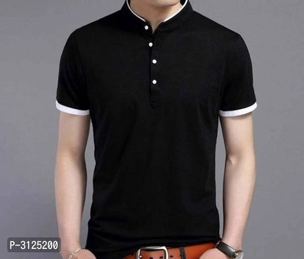 Men's Trendy Solid Cotton Mandarin Tees