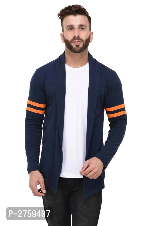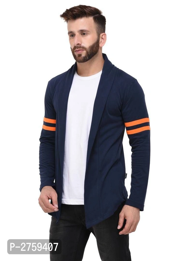 Navy Blue Open Long Cardigan Full Sleeve for Men