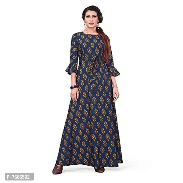 bull; Fabric - Gown/Suit : American Crepebull; Style: Anarkali belt include || Print Type: All Over Digital Printbull; Occasion: Casual Festive || Sleeves style :3/4 Bell Sleevebull; This Product Chest Sizes: Small(36), Medium(38), Large(40), X-Large(42), XX-Large(44) {in inches}This stylish floral print gown from New Ethnic 4 You is made of American Crepe and comes in an attractive Multi color. Crafted From Crepe, it will keep you Comfortable For A Casual Look and will be soft against your skin. It comes in Bright and vibrant colors, Fabulous Digital Prints which give you a Contemporary look with a bit of Ethnic look. Team it with matching leggings for a chic look.
