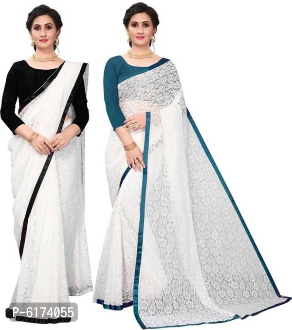 fab;-brasso work;-lace The Pack Of 2 Pcs Designer Brasso Net Saree