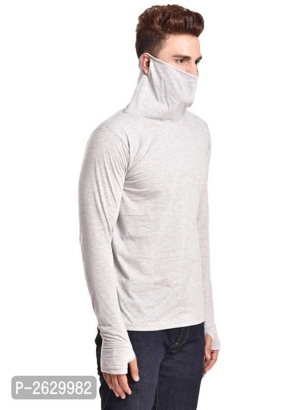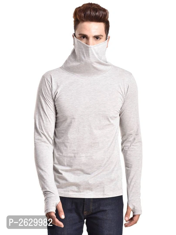Pause Silver Cotton Solid High Neck T ShirtSize: