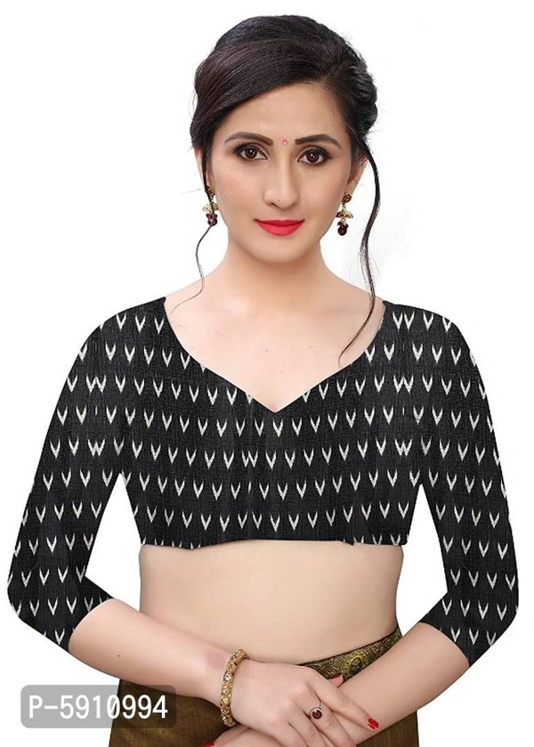 Reliable Black Khadi Silk Checked Ikat Women Saree with Blouse piece
