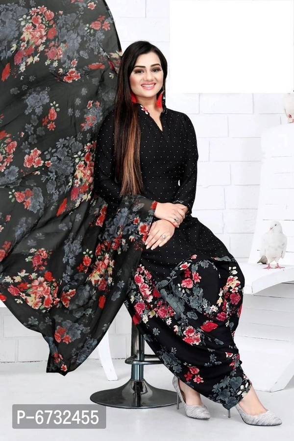 Stylish Black Crepe Dress Material With Dupatta Set For Women