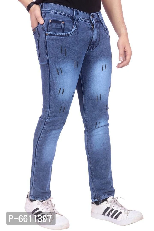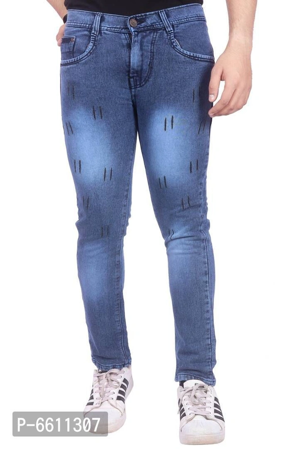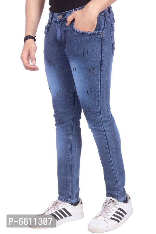 Stylish Blue Distressed Denim Cotton Strechable Jeans For Men