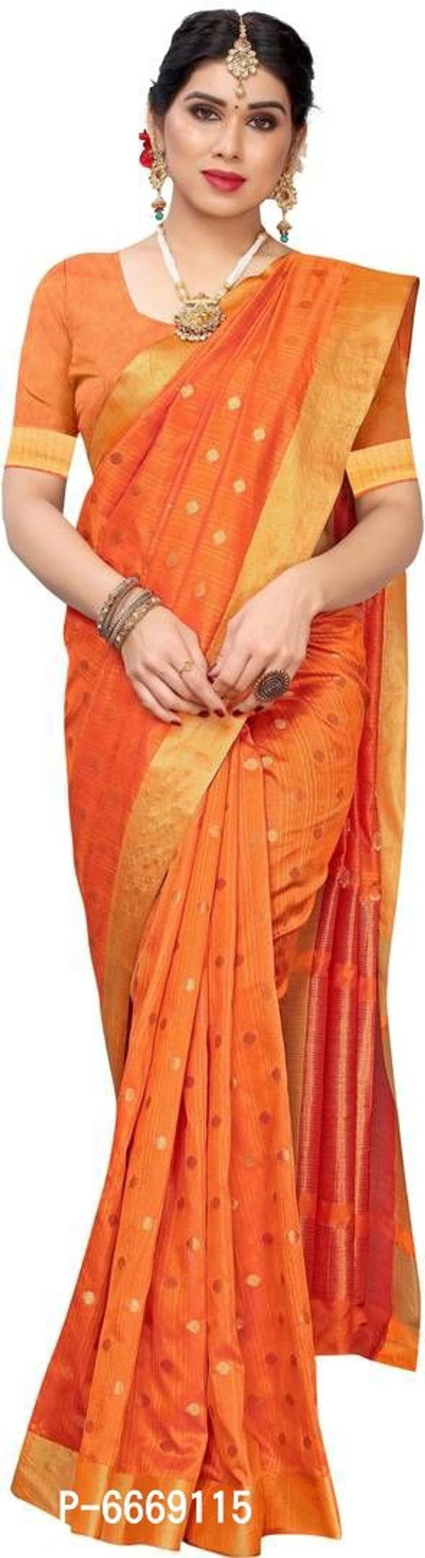 Stylish Cotton Silk Orange Woven Design Saree With Blouse Piece For Women