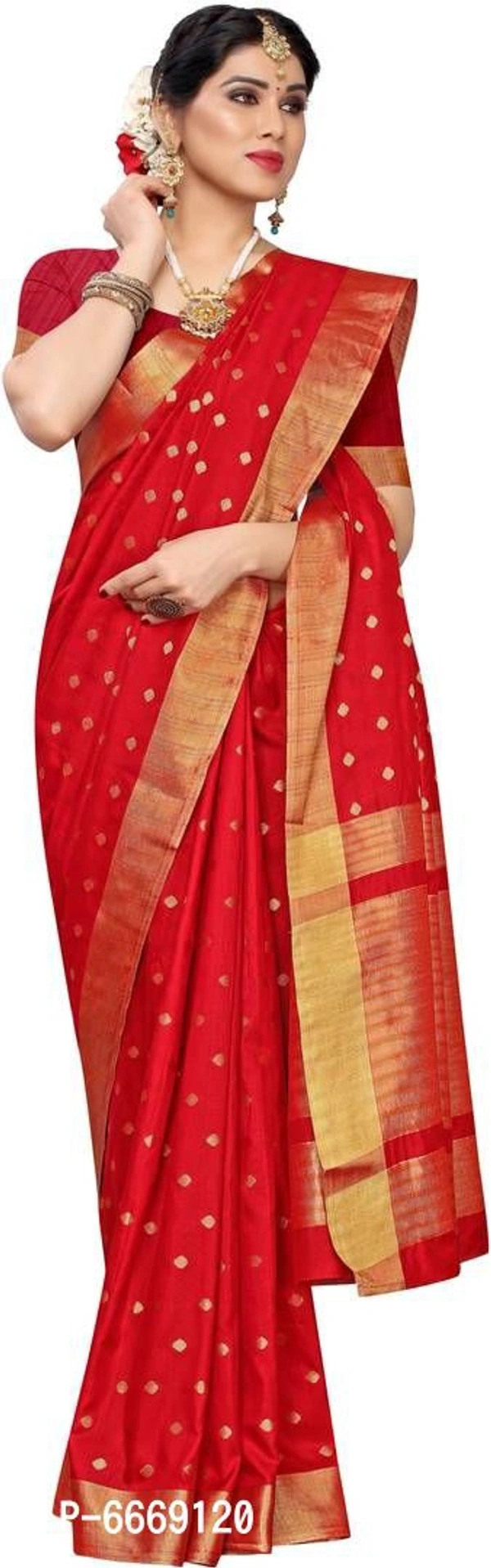 Stylish Cotton Silk Red Woven Design Saree With Blouse Piece For Women
