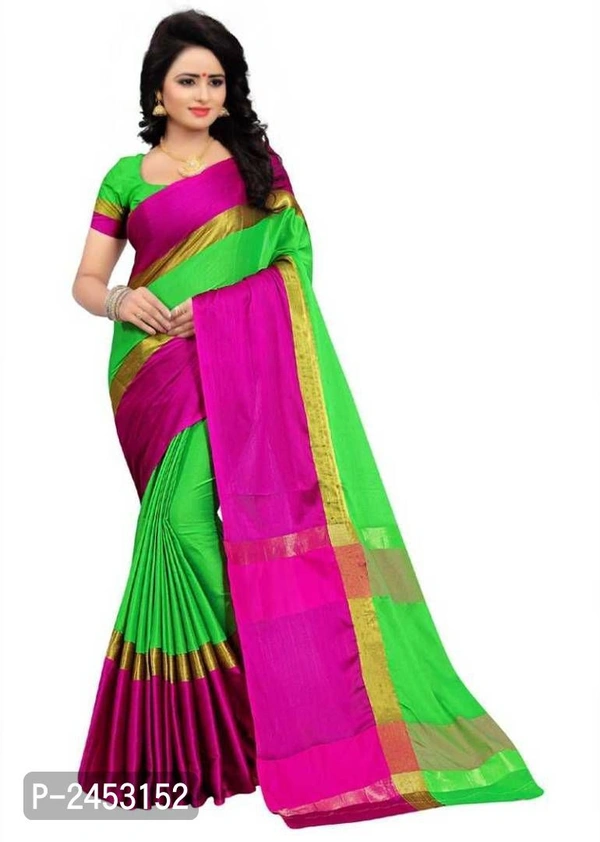Trendy Green Cotton Saree With Blouse Piece