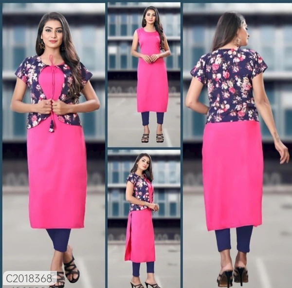 Product Name: Trendy Printed American Creape Casual Kurtis With Jacket