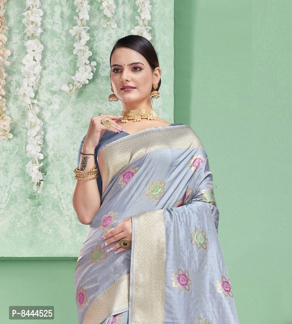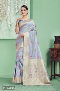 Triveni Sarees Pure Silk Grey Woven Design Saree With Blouse Piece For Women