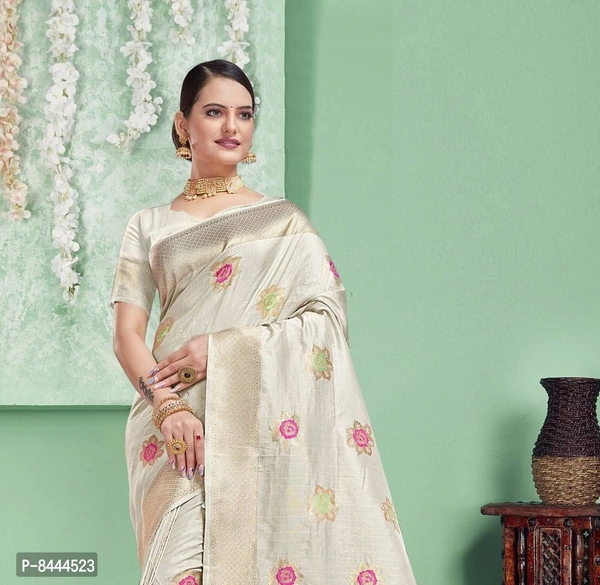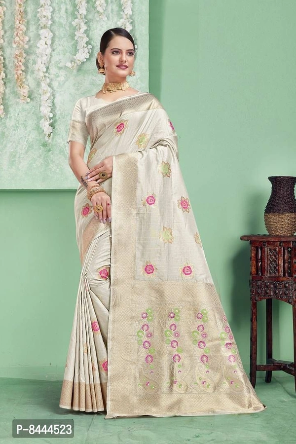 Triveni Sarees Pure Silk Silver Woven Design Saree With Blouse Piece For Women