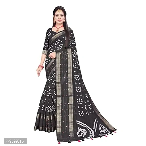 VEDIC Women's Soft Cotton Saree with Unstitched Blouse Piece [Black)