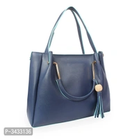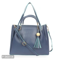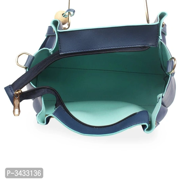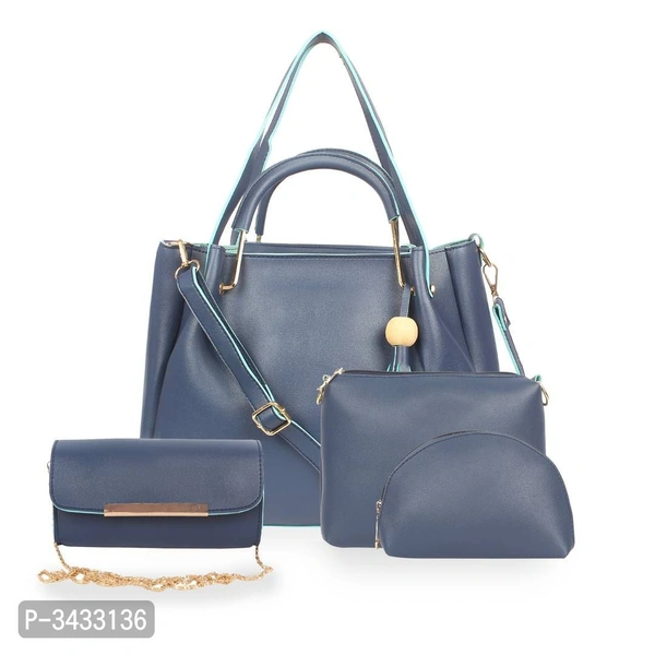 Women's Blue Faux Leather Solid ( 4 Pcs. Combo) Handbag
